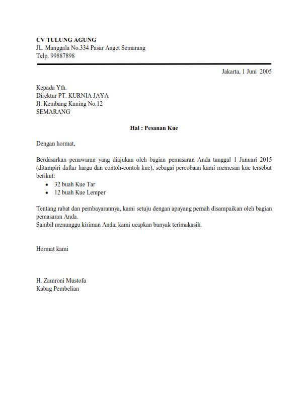 Contoh Order Letter Block Style. There are three basic types of block style: standard block style, modified block style and semi-block style. We have pleasure in sending you a copy of our catalogue, price-list and term of payment for order towel which designed specially for your hotel guest.